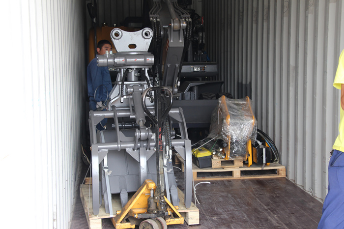 此次出口挖掘機型號為DLS885BLH-9M輪式蔗木裝卸機。