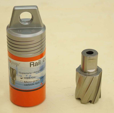 應用:鋼軌鉆孔,每個鉆頭可以鉆鋼軌30-50個孔,并可反復磨3-5次。