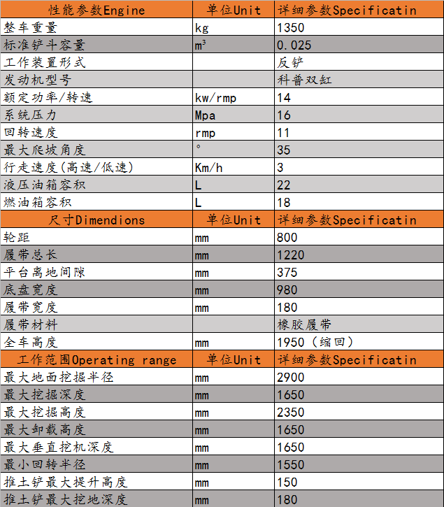 DLS20小型履帶挖掘機(jī)參數(shù)