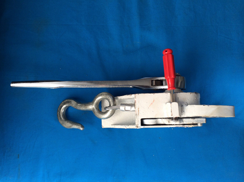 1.安裝:用專有鑰匙反時(shí)針打開內(nèi)置棘爪,定位拉出鋼絲繩防溜器,卡槽卡在手閘座上,拉鉤掛在手閘鏈環(huán)上,順時(shí)針轉(zhuǎn)動(dòng)制止用棘輪搬手?jǐn)Q緊既可。